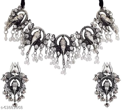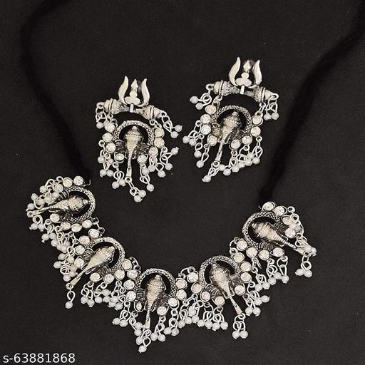 Name: Jewellery Oxidised Silver Ganesh Choker Necklace Set for Women & Girls
