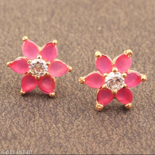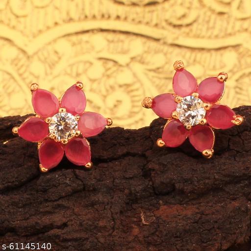 Jewels Corner Delicate RUBY FLOWER AD EARRING Cubic Zirconia Brass Stud Earring