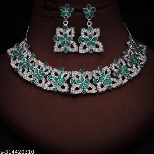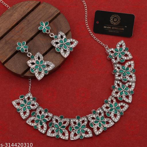 This jewellery set consists of a necklace and a pair of earrings. Silver Plated Necklace, has Artificial Stone studded detail, secured with a S Hook closure. A pair of matching Drop Earrings, each secured with a Post and Back Closure.KEQE is a celebration of womanhood, a celebration of the life of a confident, down to earth woman who is here in today’s modern world with traditional sensibilities and a whole lot to give and share.KEQE brings the best, exquisite design jewelry to you at affordable prices. Our expert eye for craftsmanship, rarity, and quality can be seen through all of our flattering designs. This breathtaking necklace with earrings jewelry set is great for making a fashion statement. It will bring you a lot of compliments.This is a must-have design that can be worn on special occasions to boost up your style factor and enhance the beauty of yours.