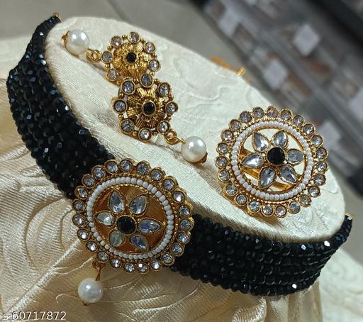KHETLAZEE® GOLD PLATED ANTIQUE DESIGN NECKLACE SET AND FINGER RING FOR WOMEN AND GIRLS. MADE BY ALLOY METAL AND CRYSTAL STONE. HIGH-QUALITY GOLD PLATED. 1 NECKLACE,1 PAIR OF EARRING AND 1 FINGER RING