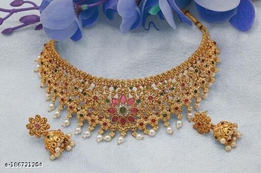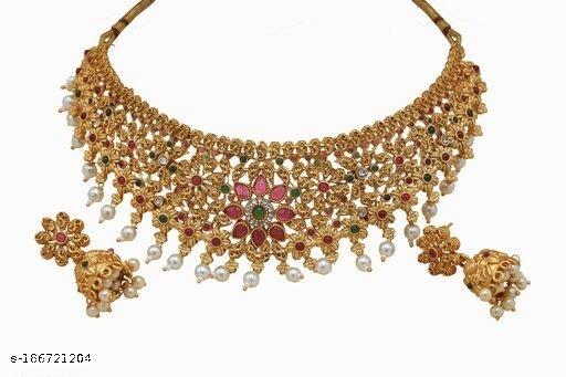 Name: KHETLAZEE MATT GOLD PLATED NECKLACE WITH EARRINGS AND MAANG TIKKA FOR GIRLS AND WOMEN