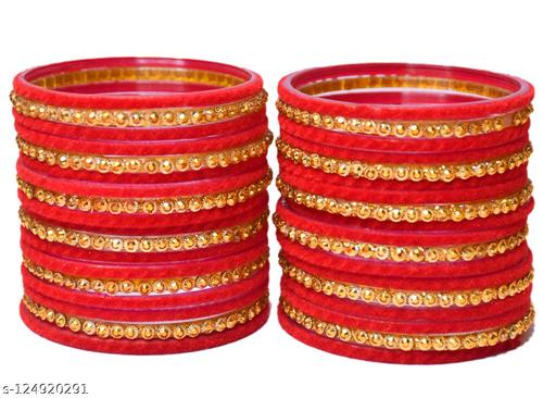 Name: KOHINOOR RED VELVET GLASS BANGLE SET PACK OF 36 DLHAN TRADERS