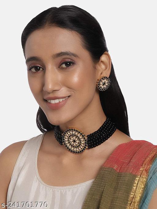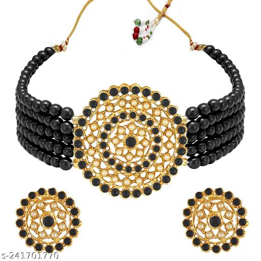 Latest Women's Choker Set || Beads Chains || White & Black Pearls Necklace Combo Of 2