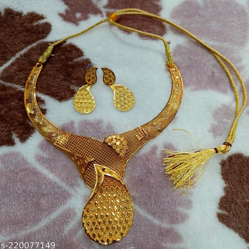Latest Design Traditional Gold Plated Designer Necklace with Earrings, Suitable in all Neck, Free Size for Girls & Women.