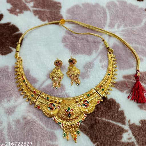 Latest Design Traditional Gold Plated Designer Necklace with Earrings, Suitable in all Neck, Free Size for Girls & Women.