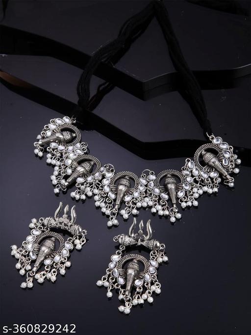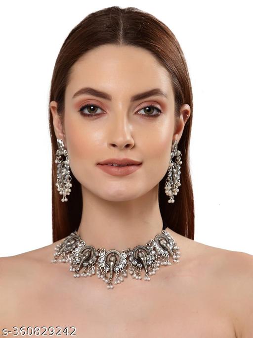 Name: Latest Stylish Fancy Oxidized Silver Choker Necklace Set for Women