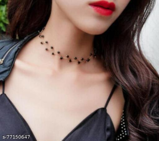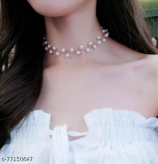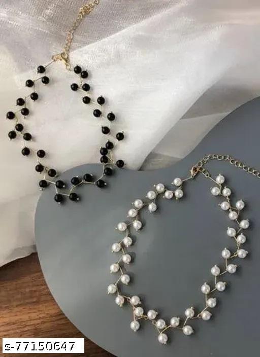 Name: Latest Women's Choker Set || American Diamonds White & Black Pearl Choker Necklace for Women & Girls | CHOKER | Simple Necklace for Girls
