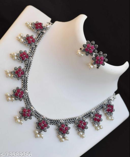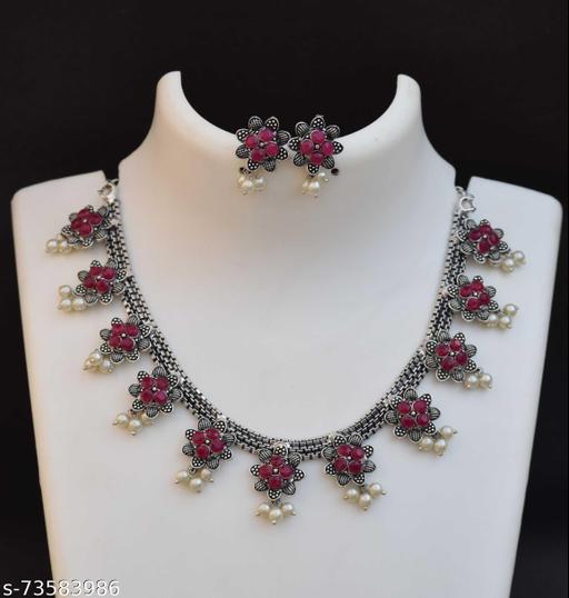 Name: LAXMIT's Siver Oxidized Rani Stone Studed Jewellery Set