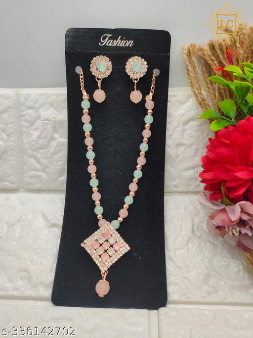 Elevate her style with our exquisite Gold-Plated Pendant Necklace Set from LC Jewelz. This stunning jewelry ensemble features a beautifully crafted pendant adorned with sparkling artificial stone beads, complemented by a matching chain and elegant earrings. It's the ultimate gift for your beloved wife, designed to make her shine on any occasion.