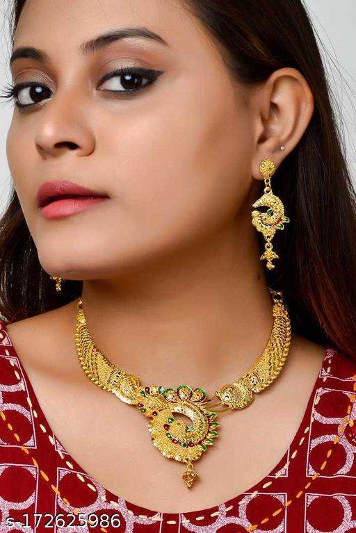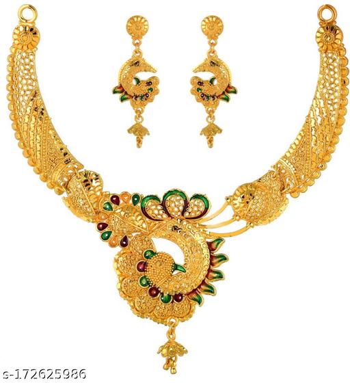 Ethnic Pearl Gold Plated Floral Long Haram Necklace Set for Women is made of Alloy. Women love jewellery; specially traditional jewellery adore a women. They wear it on different occasion. They have special importance on ring ceremony, wedding and festive time. They can also wear it on regular basics. Make your moment memorable with this range. This jewel set features a unique one of a kind traditional embellish with antic finish.