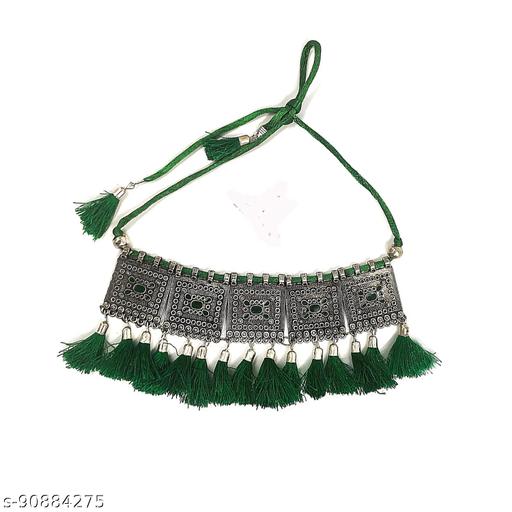 Name: ManRaGini New Jewel Oxidised Jewellery Afghani Style Necklace & Bahubali Maang Tikka Set for Women & Girls