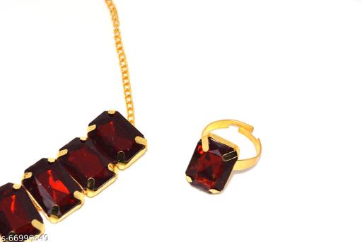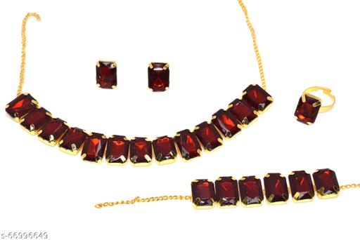 Name: Maroon Choker Set With Adjustable Ring, Bracelet And Stud Earrings