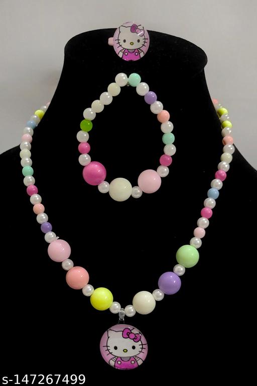 Name: Mebella Girls Multicolor Beaded Stretchable charm Necklace Set with Ring /Stretchable Bracelet/10 Pcs Metal Hair Pins Jewellery Set