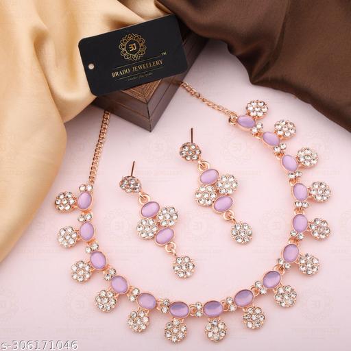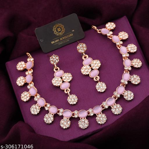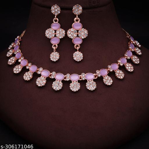 Product Details - Material : Brass, Plating : Rose Gold Plated. In The Box :- Pack of 1 Rose Gold plated American Diamond Choker Jewellery Set Necklace + 1 Pair of Earring. Material : Made With Pure Brass that Why Color Will Not Fade. We Used White Heavy Polished Diamond in Earring Also. Its Necklace Light Weight To Wear.Necklace Set That Skin Will not Damage Becoz Of use Brass.Color will not Fade.Our Choker Necklace Set is a combination of our most popular styles.Necklace for Women And Girls & Also Necklace Set For Girls And Women This set has a lightweight and comfortable Materials, which keeps you feeling fresh all day long. It can be worn for various occasions and Neclace For Gilrs & Neclace Set the perfect accessory for any outfit.