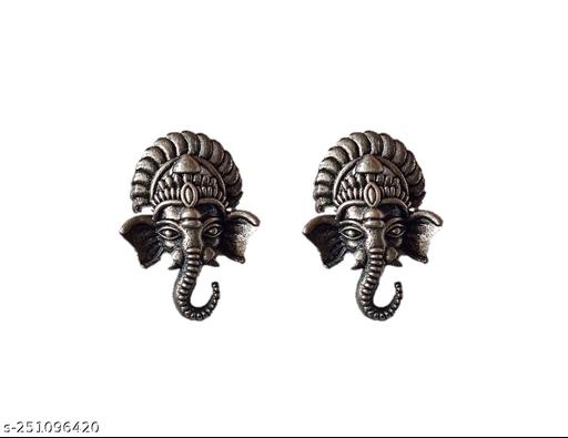 Name: Muccasacra Stone Medallion Oxidised Sterling Silver, Ganesha Stud