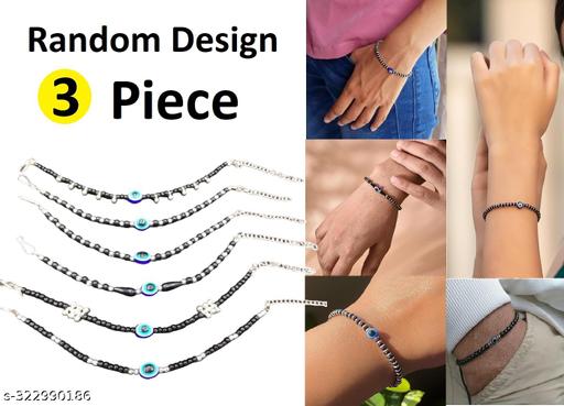 Name: New Collection’s 3pc Random Exclusive Random Evil Eye Nazariya Hand Bracelet with Black & Silver Beads for Baby Boys & Girls