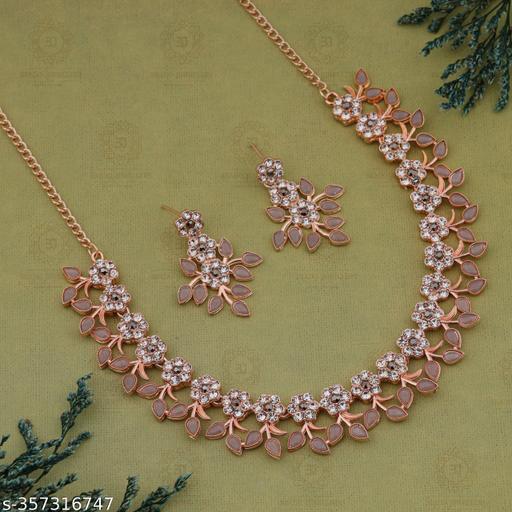 "NEW ROSE GOLD PLATED NECKLACE SET WITH EARRING FOR WOMEN'S AND GIRLS" "DIAMOND NECKLACE SET" "WOMEN NECKLACE SET" SHORT NECKLACE SET"