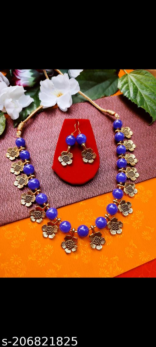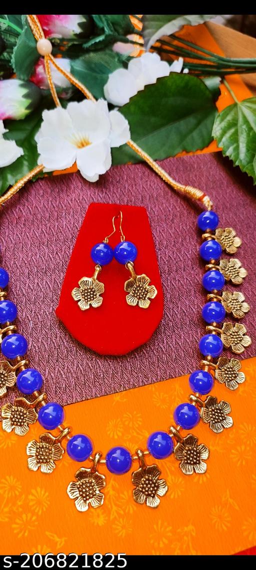 Name: New Trendy Blue Pearls mala Nacklace With earring jewellery set