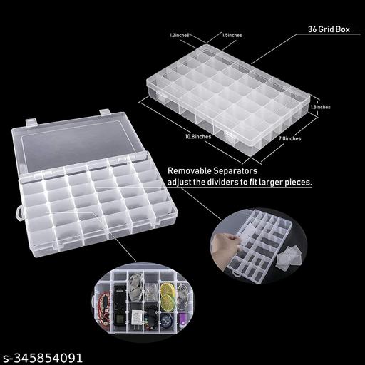 Name: Nitron® 36 Grid Multipurpose Plastic Jewellery Organizer Plastic Grid Box Organizer for Jewelry, Hair Pins, Medicine and Kit Ear Ring Organiser Storage Box for Travel Home Women - Transparent(05)