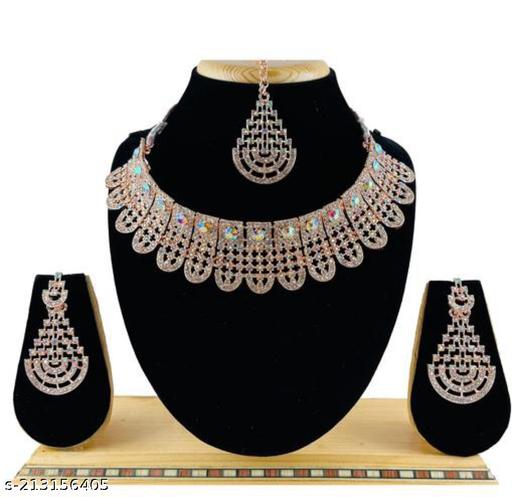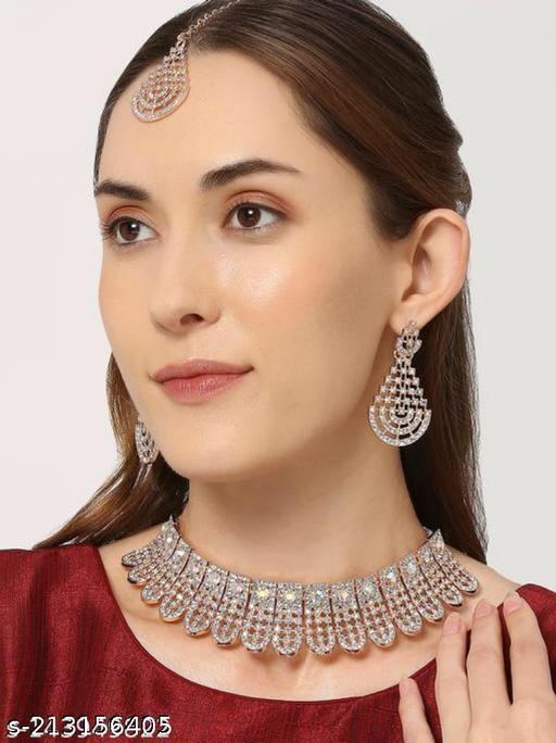 Base Metal: Alloy Plating: Rose Gold Plated Stone Type: Artificial Stones & Beads Sizing: Adjustable Type: Necklace Earrings Maangtika Net Quantity (N): 1 Base Metal: Alloy Plating: Rose Gold Plated Stone Type: Artificial Stones Sizing: Adjustable Type: Necklace and Earrings Net Quantity (N): 1 We are focused not only on delivering quality products but to provide our customers a unique shopping experience by offering exclusive product range as well as ensuring that the products reach you on time. All our products pass through quality checks before offering the same to our customers. For us, customers are our topmost priority and we strive to achieve maximum satisfaction. Country of Origin: India Country of Origin: India