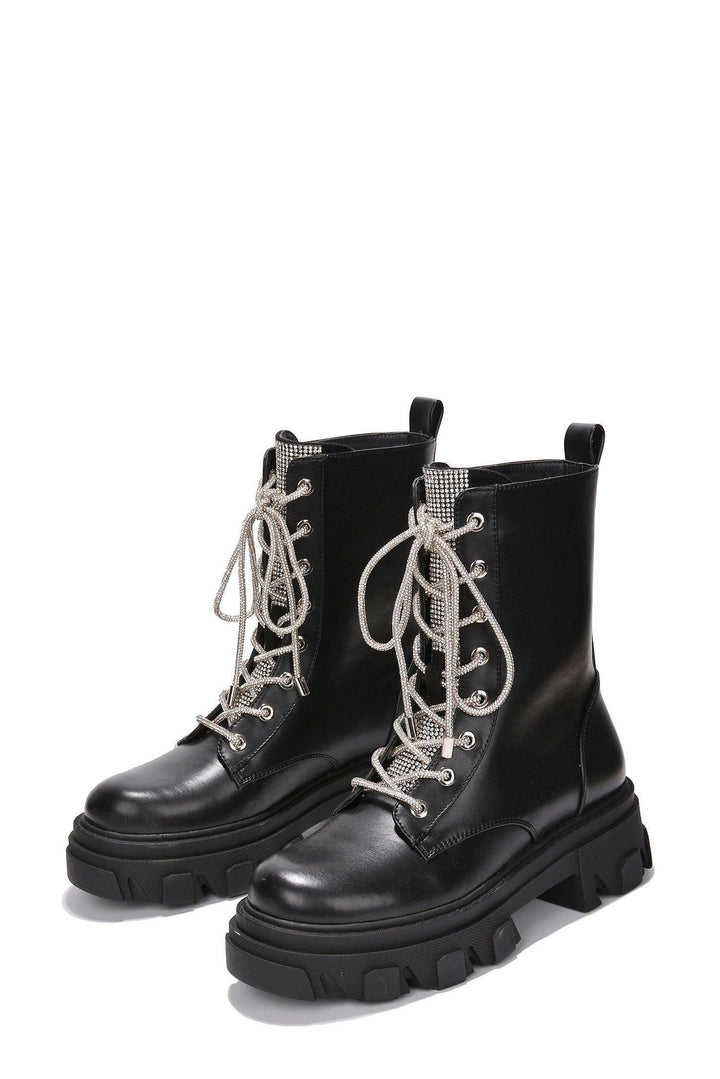 NUNANI - BLACK - BOOTIES by CAPE ROBBIN black rhinestone boots chunky boots 8 hole boots diamante boots ankle boots rhinestone rope round toe These Nunani rhinestone boots are the perfect choice for any fashionista! Made with high quality materials,these 8-hole boots feature a chunky design,sparkling diamante accents,and rhinestone rope. The round toe adds a touch of sophistication and the ankle height makes them perfect for everyday wear. These stylish boots will be sure to make you stand out in any crowd!