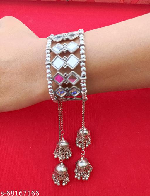 IT IS A LONG PENDANT SET. IT IS VERY BEAUTYFUL SILVER KRISHNA NECKLACE WITH MIRROR BRACELET.