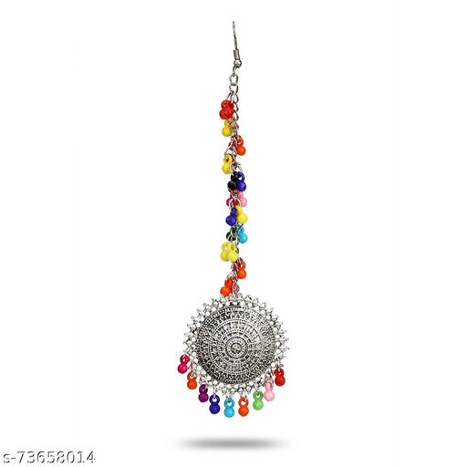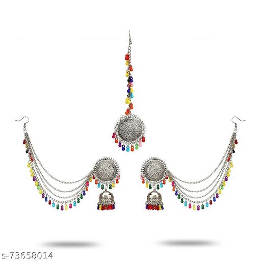 Name: Oxidised Silver Multicolor Maangtika with Earrings Jhumkis For Women and Girls