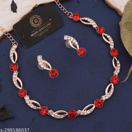 Exclusive Rose Gold Necklace. Material Brass,American Diamond, LT, Silicon, Monalisa Stone. Size : Free. You Can Adjust At Necklace Chain By Moving Hook, Product Dimension : Necklace Length - 23 cm| Necklace Width - 1 cm| Earring Length - 2.5 cm| Earring Width - 1 cm, Package Contains : 1 Necklace + 1 Pair of Earring, Very easy to use being lightweight and has a design which makes it very comfortable.They wear it on different occasion. They have special importance on ring ceremony,Party, wedding and festive time. This jewellery set features a unique one of a kind traditional embellish with antic finish.Perfect gift : Ideal Valentine, Birthday, Anniversary gift your loved ones. Women love jewellery.