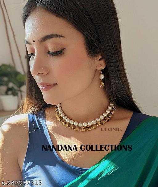 Name: Pearl Choker Traditional White Necklace Set with Earrings For Girls and Women