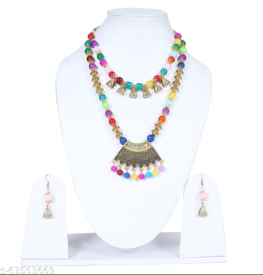 Name: Pearls Antique Gold Tone Bridal Collection Long Temple Necklace & Earring Set For Women-