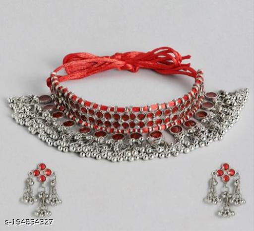 Primis Oxidised German Silver Necklace For Women & Girls .This product is made out of metal and polished with silver. Please keep the Necklace away from perfumes and sprays and any other Toxic material.