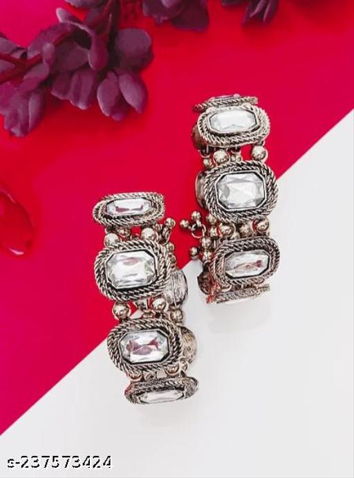 Name: Primis Present's You latest Designed Women Set of 2 German Silver Oxidised Brass-Plated Bangle-Style Bracelets For Girls & Woman