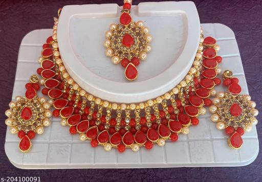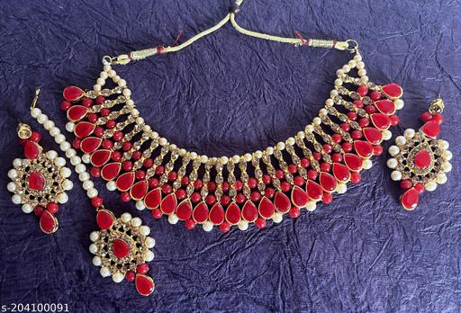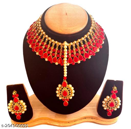 Prints Hearts brings you the latest design traditional jewellery set for women with 1 necklace set, 2 earrings, 1 maangtika. Wedding party wear necklace jewellery, birthday, anniversary gift for girls women