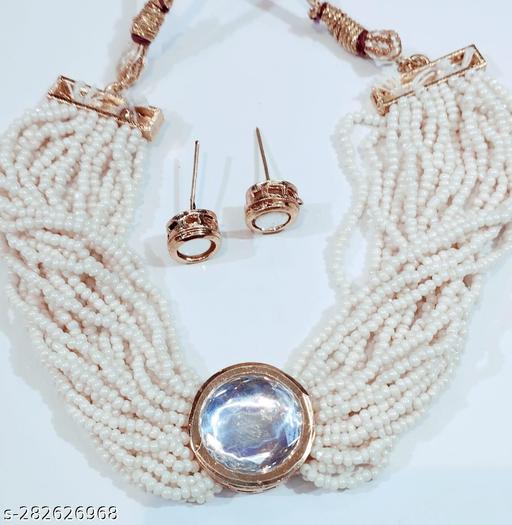 Name: Purna Jewellers White Pearl Gold-Plated Kundan Jewellery Set with A Pair of Earrings for Mehndi, Haldi, Wedding, Godbharai, Festive-White Golden