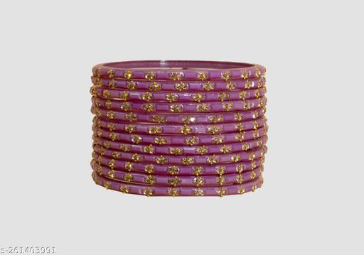 Name: Pyazi Color Glass Bangles with Stone Studded Chudi Set for Women Girls/ChTR
