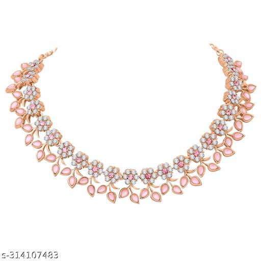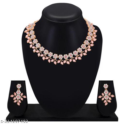 Name: Rose Gold Plated Necklace set with Peach color Kundan Jewellery Sets