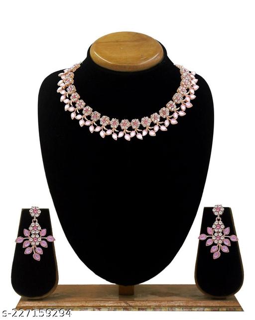 Name: Rose gold plated necklace set with peach color kundan jewllery sets