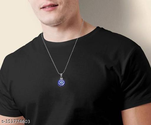 Name: Round Dual Side Chakra Blue Stone Evil Eye Nazar Suraksha Kavach Locket Pendant Stainless Steel Pendant