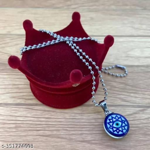 Evil Eye Nazar Suraksha Kavach Locket Pendant Necklace with Chain for Girl's Gold-plated, Platinum, Sterling Silver, Titanium Crystal, Cubic Zirconia, Zircon Silver, Stainless Steel, Sterling Silver, Stone, Titanium, Zinc Locket