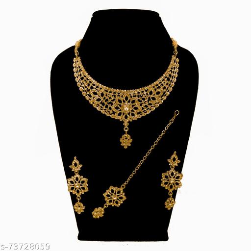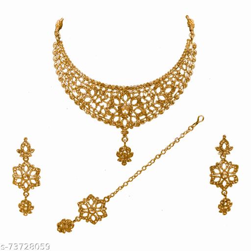 Name: SAIYONI Glamorous Design Gold Plated Choker Necklace Earring With Maangtikka Set