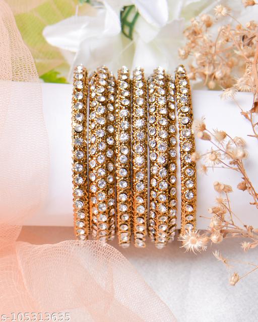 beautiful and traditional bangle set for girls and women, Indian jewellery. The photo itself shows how beautiful these wedding bangles are. This is a sober piece of Indian jewellery, bridal bangle, wedding jewellery that goes nicely on both formal and casual dresses. Parties like weddings, Eid parties, bridal showers or any party where girls wear different types of dresses and matching bangles, without that dress is incomplete. People love the tinkling sound so as women, which also gives a soothing effect to all hearts. The colour is so simple and sweet that everybody would love it. You may give a gift to your mother in law, sister and of course to your wife.