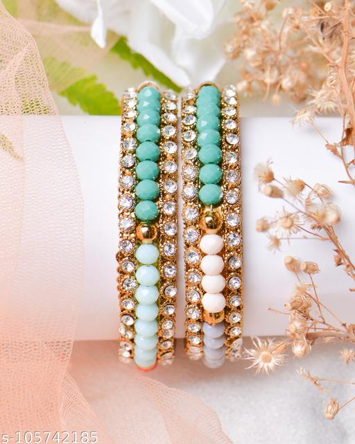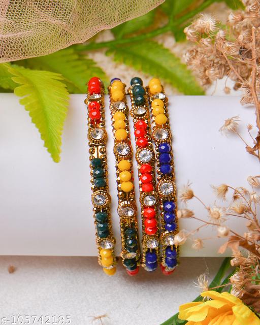 Name: Shining Diva Latest Antique Multicolor Hanging Jhumka Set Bangles for Women and Girls Pack Of 4