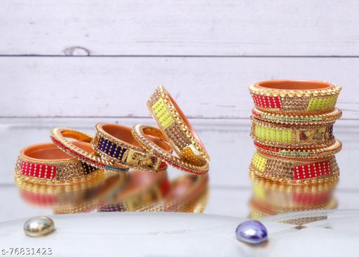 Shop From Wide Range Of Kundan Work Bangles, Glass Bangle Set, Thread Bangle Set, Metal Bangle Set, Kada Set, Chuda Set etc. From Shivarth (New Make In India) On MEESHO. This Glossy Finish Acrylic With Radha Krishna Pattern Kada And Zircon GemStone Pattern Worked Chuda Set Complete Your look With the Perfect Jewellery For Any Occasion: Wedding, Anniversary, Ring Ceremony, Office, Engagement, Dailywear.Standard grade Acrylic, brass, stones and kundan are used to made royal chudas set; it not only gives the traditional vibes but also ensures durability.Gift this beautiful Radha Krishna Chudas set to women on her special or auspicious occasion. It will certainly adore the hands with its bright colors.