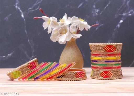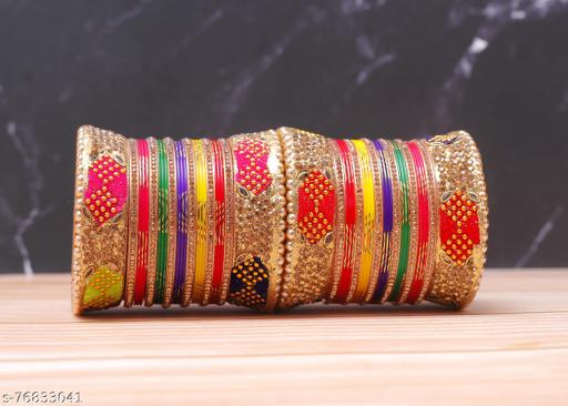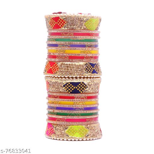 Vivah/Marriage/Wedding Bridal tradition Chura/Chuda Bangles for Bridal/Dulhan in Multicolour made of acrylic, plastic, fiber is of Top Quality and thick. The chura is Laminated and value for money.The Bridal Chura Set for wedding in latest Design and best style.Women Love Bridal Jewellery; Specially Chuda Bangles/Kada Adore A Women. They Wear It On Different Occasion. They Have Special Importance On Everday,Ring Ceremony, Wedding And Festive Time. They Can Also Wear It On Regular Basics. Make Your Moment Memorable With This Range. This Chuda/Bangle/Kada Set Features A Unique One Of A Kind Design With Royal Finish.