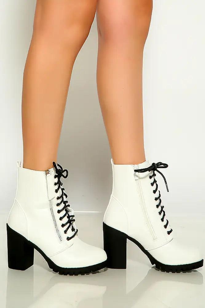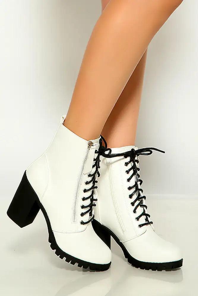 Dress up any outfit with these boots! Featuring; round toe,lace up, two tone side zipper closure, quilted. Followed by a cushioned Footbed. Approximately 3 inch heels