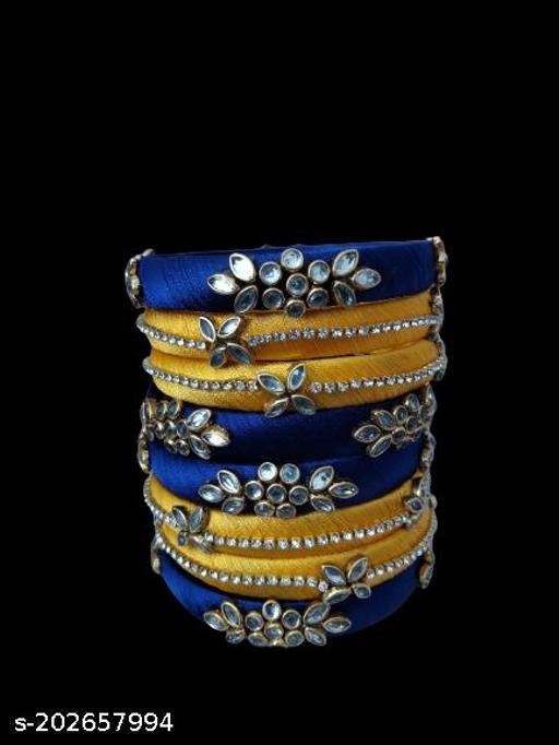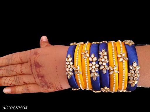 Name: SHRIVAS JEWELS Silk Thread Bangles Kada For Women Girls 8 Pc Set Wedding & Festive Occassion Hnadmade Multicoloured Chura Chuda(Yellow - BLUE)NEW