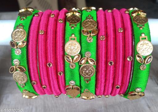 Silk Thread Bangles Set with Coin for 2 Hands (12 Bangles)