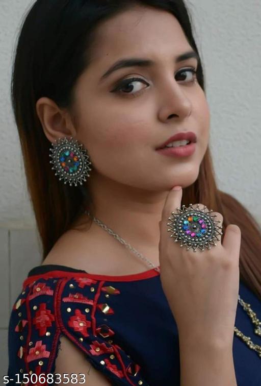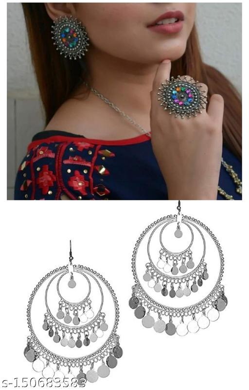 Name: Silver Chandbali And Multi Earrings Ring Combo Jewellery Set