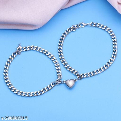 Name: Silver Couple Bracelet Magnetic Silver Plated Heart Bracelets Love Couples Bracelets Friendship Promise 2 In 1 Wrist Band Link Chain Bracelet For Men
