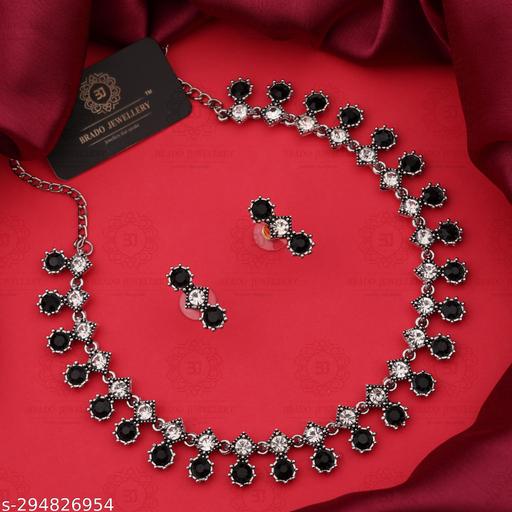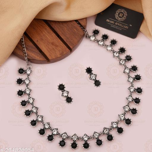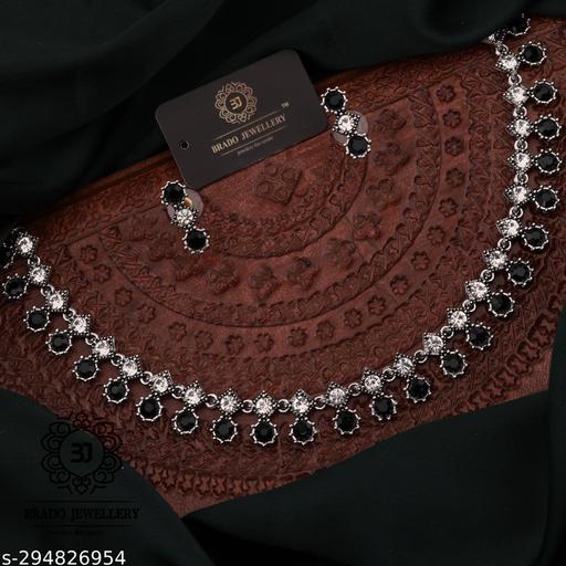 Exclusive Silver Necklace. Material Brass,American Diamond, LT, Silicon, Monalisa Stone. Size : Free. You Can Adjust At Necklace Chain By Moving Hook, Product Dimension : Necklace Length - 23 cm| Necklace Width - 1 cm| Earring Length - 2.5 cm| Earring Width - 1 cm, Package Contains : 1 Necklace + 1 Pair of Earring, Very easy to use being lightweight and has a design which makes it very comfortable.They wear it on different occasion. They have special importance on ring ceremony,Party, wedding and festive time. This jewel set features a unique one of a kind traditional embellish with antic finish.Perfect gift : Ideal Valentine, Birthday, Anniversary gift your loved ones. Women love jewellery.